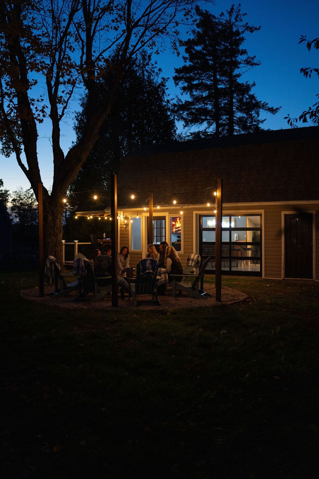For fun, head to the transformed garage game room, fully equipped with pool, foosball, pop-a-shot, and more. Outdoors, enjoy evening fires by the fire pit or indulge in classic outdoor games surrounded by towering cedar trees.